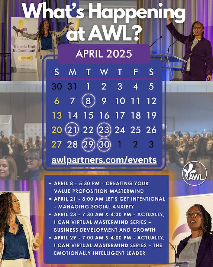 Check out what’s coming up at www.awlpartners.com/events , including our next Let’s Get Intentional session and other leadership growth opportunities.